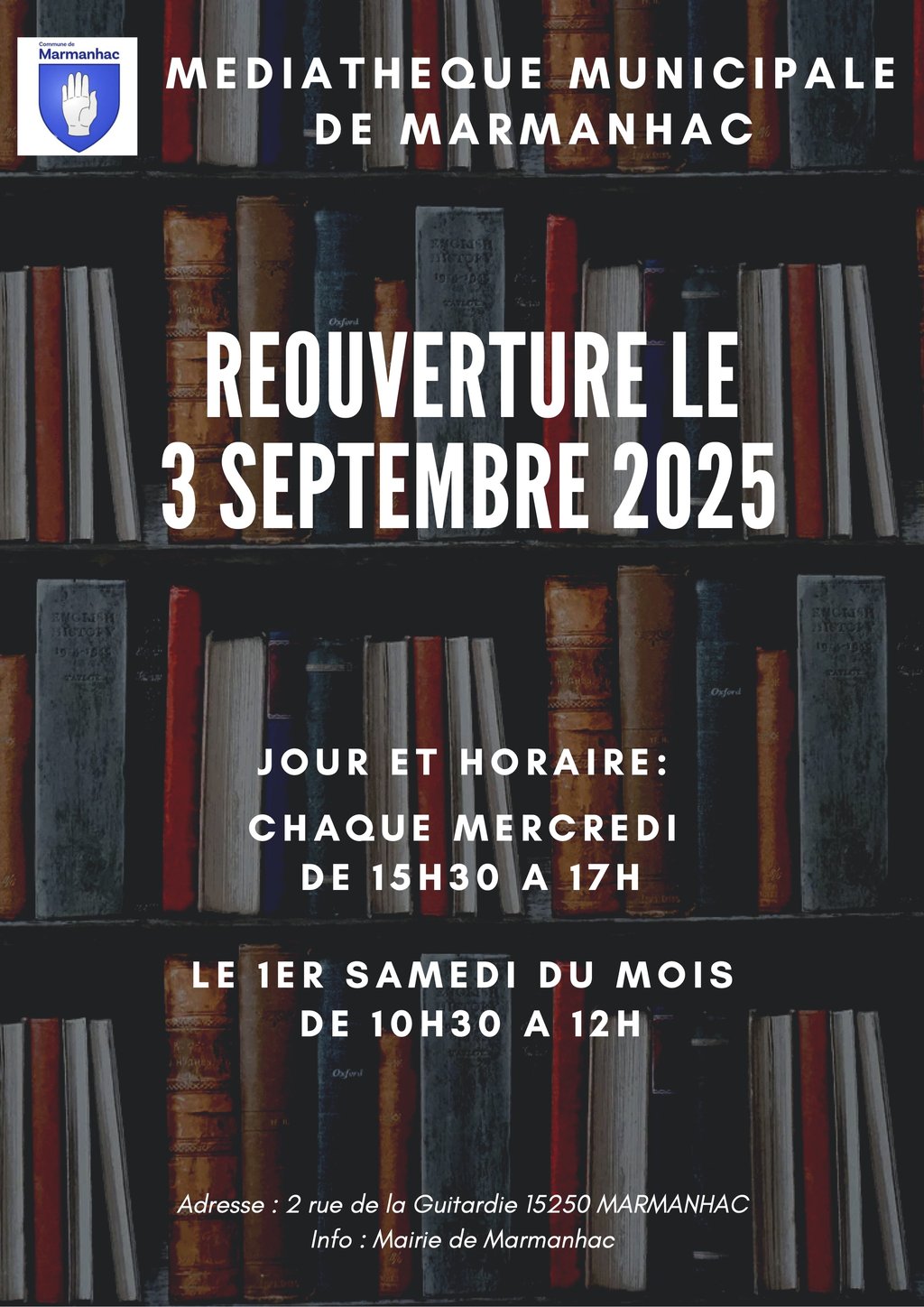 Avis aux lectrices et lecteurs de la commune et ses environs : la médiathÚque rouvre ses portes à partir du 3 septembre !