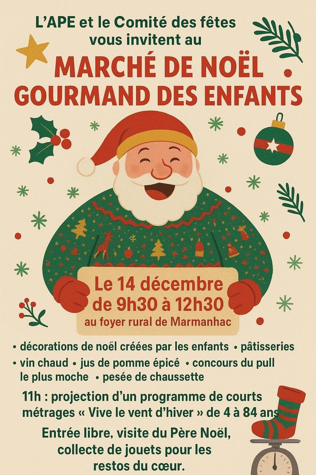 L'APE et le ComitĂ© des fĂȘtes vous invitent au MarchĂ© de NoĂ«l gourmand des enfants !