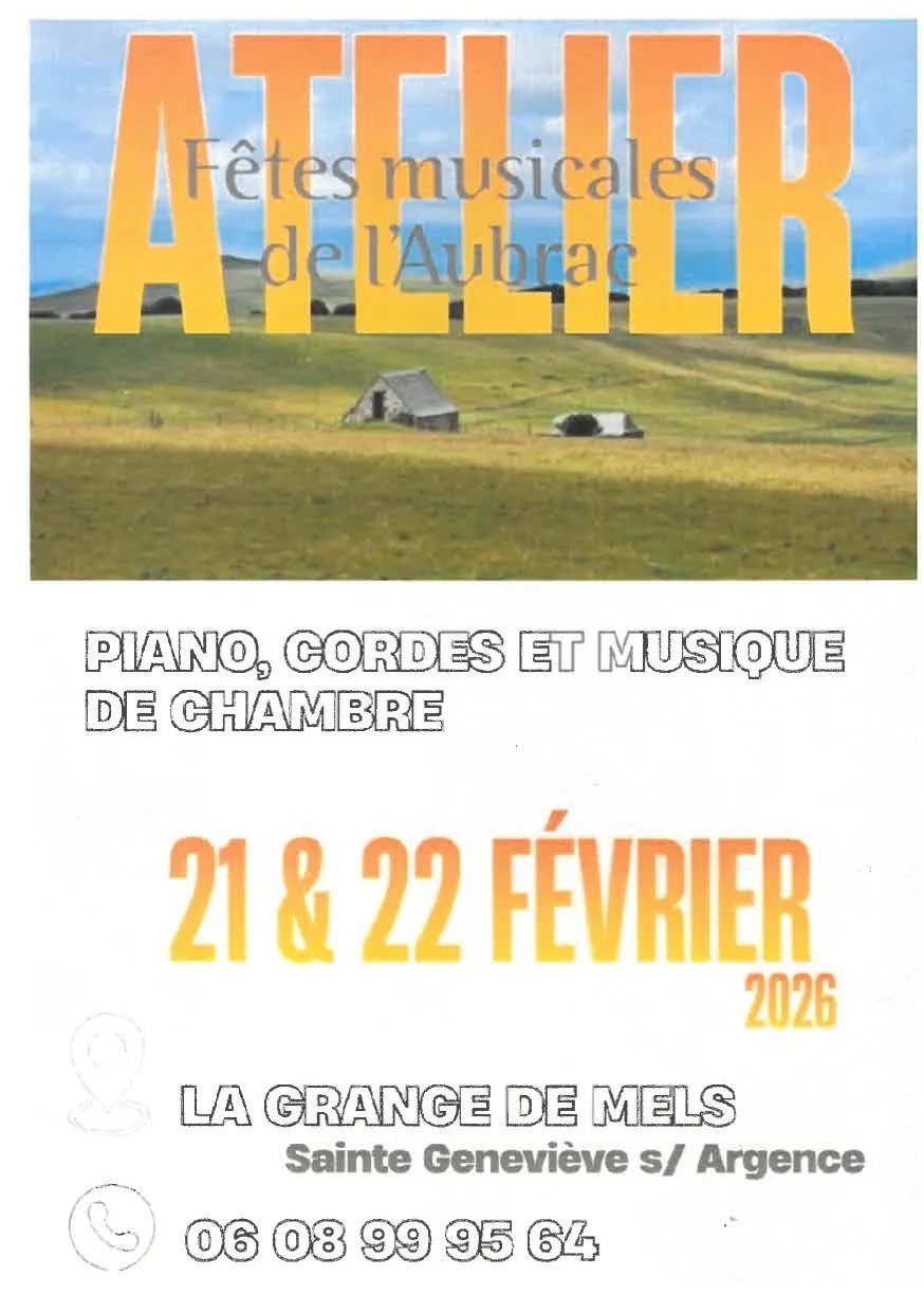 Dans le cadres des ateliers organisés par les Fêtes Musicales de l'Aubrac et animés par Anne le Bozec & Alain Meunier, venez assister au concert des stagiaires, le dimanche 22 février à la Grange de Mels.
