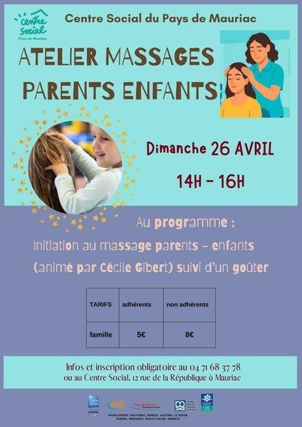 Initiation au massage parents-enfants animé par Cécile Gibert suivi d'un goûter.