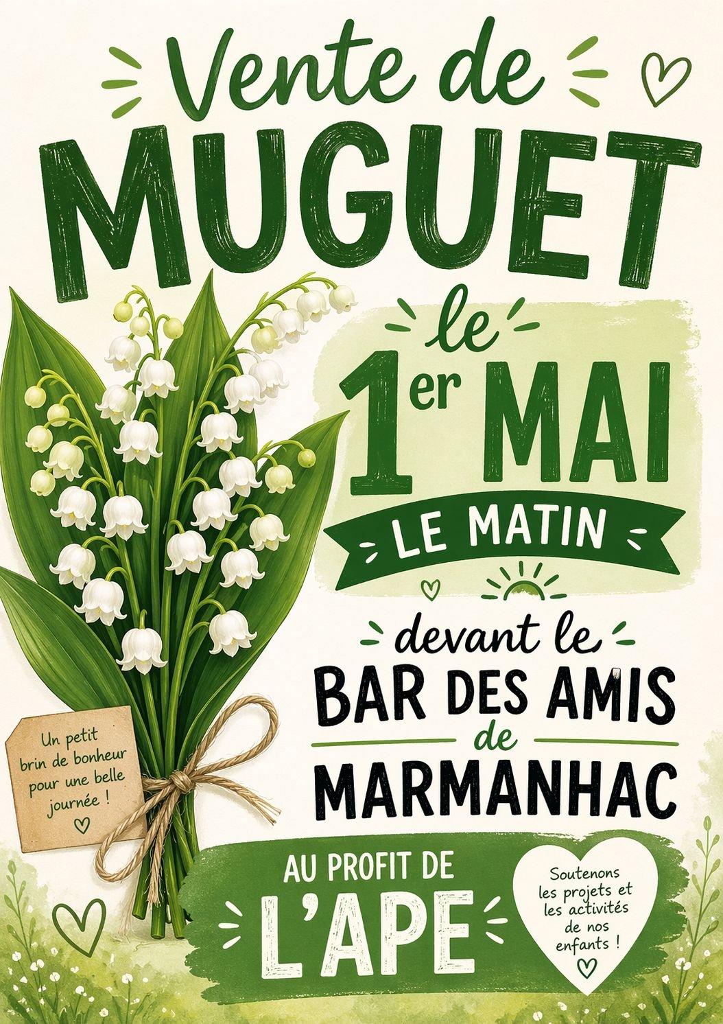 Le matin du 1er mai, vente de muguet devant le bar des amis de Marmanhac !